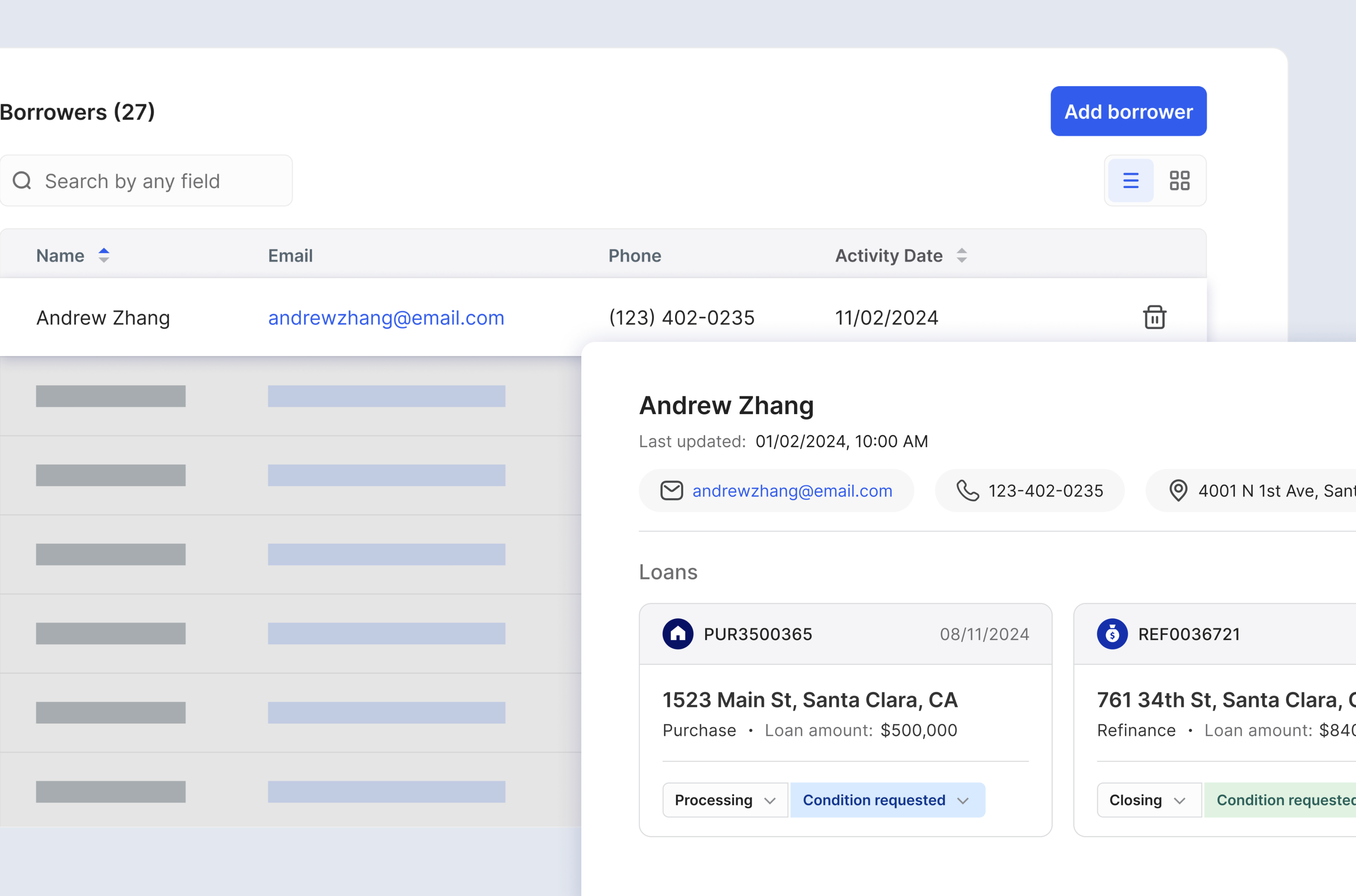 Manage your entire loan process with an integrated CRM, tracking leads, borrower profiles, and loan status from start to finish.